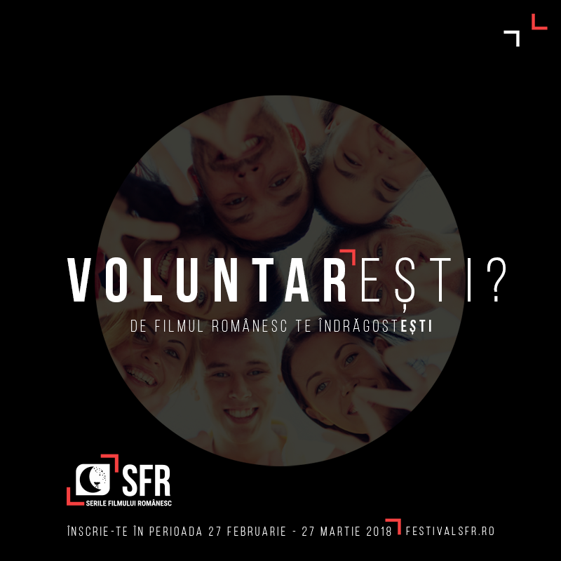 Echipa Serile Filmului Românesc anunță că încep înscrierile pentru voluntariat în cadrul festivalului, care va începe pe 6 iunie la Iași. Cei interesați trebuie să completeze formularul de pe site-ul festivalului, la rubrica VoluntarEști, aici. Perioada de înscrieri este cuprinsă între 27 februarie – 27 martie 2018.